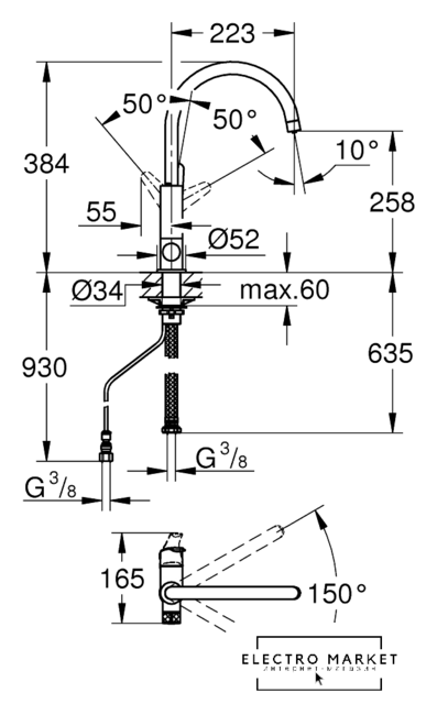 однорычажный смеситель для кухни, монтаж на раковину или столешницу