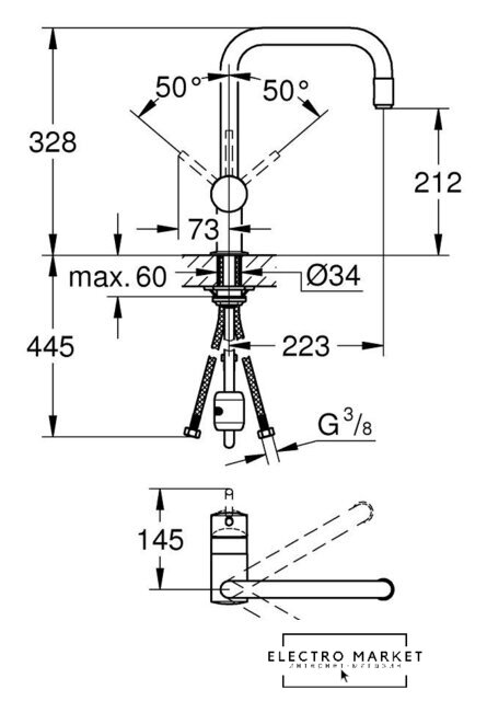 однорычажный смеситель для мойки, монтаж на раковину или столешницу
