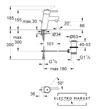 однорычажный смеситель для ванны и душа, монтаж на стену