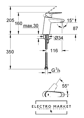 Длина (вылет) излива | 116 мм |