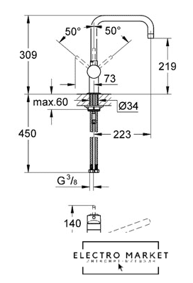 однорычажный смеситель для умывальника, монтаж на раковину или столешницу