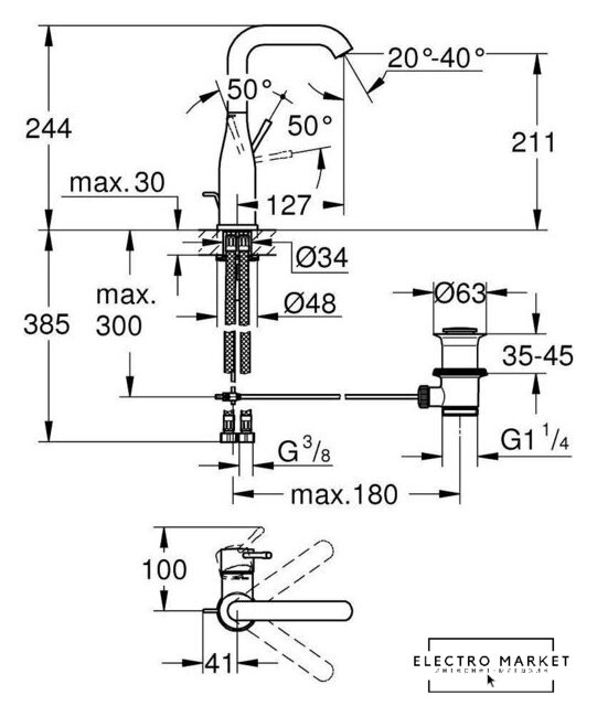 однорычажный смеситель для умывальника, монтаж на раковину или столешницу