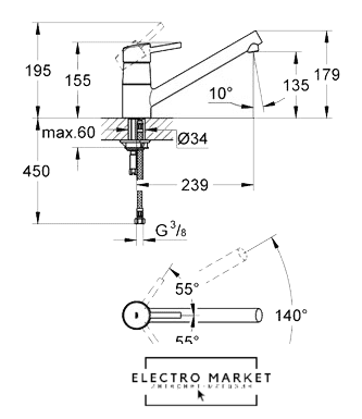Поворотный излив | 140 ° |
