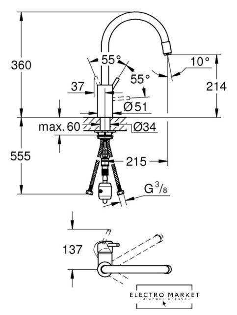 однорычажный смеситель для умывальника, монтаж на раковину или столешницу
