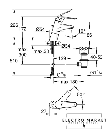 однорычажный смеситель для умывальника, монтаж на раковину или столешницу