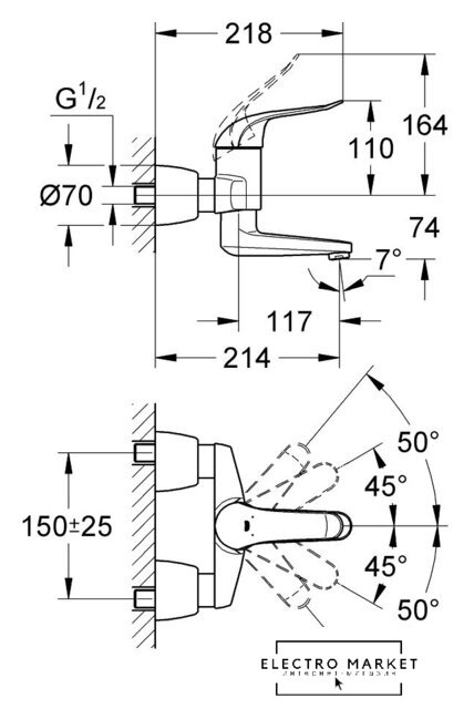 однорычажный смеситель для ванны и душа, монтаж скрытый