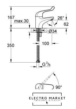 однорычажный смеситель для умывальника, монтаж на раковину или столешницу