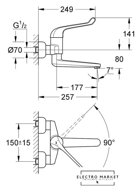 однорычажный смеситель для ванны и душа, монтаж на стену