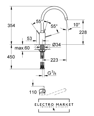однорычажный смеситель для мойки, монтаж на раковину или столешницу