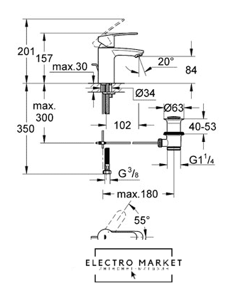 однорычажный смеситель для умывальника, монтаж на раковину или столешницу