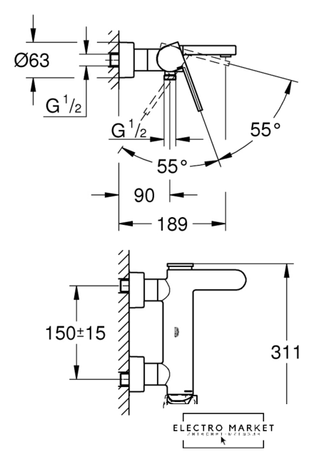 однорычажный смеситель для ванны и душа, монтаж скрытый