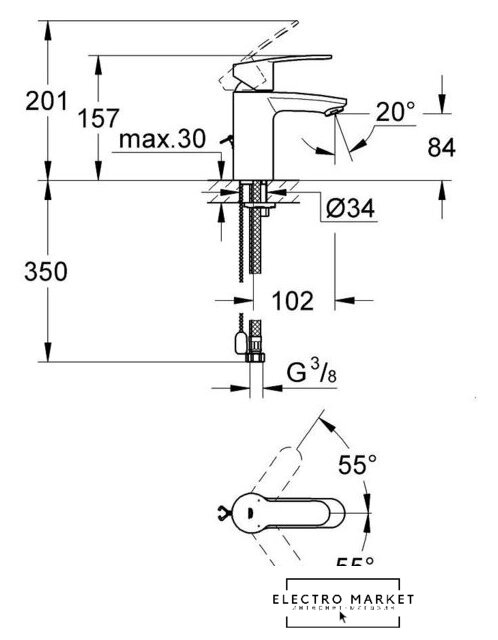 однорычажный смеситель для умывальника, монтаж на раковину или столешницу