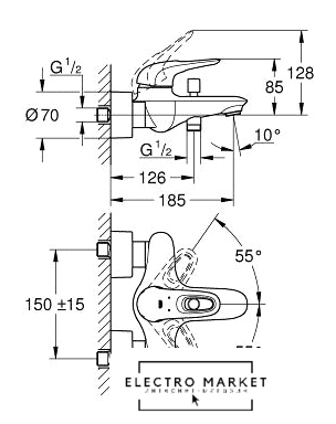 однорычажный смеситель для ванны и душа, монтаж на стену