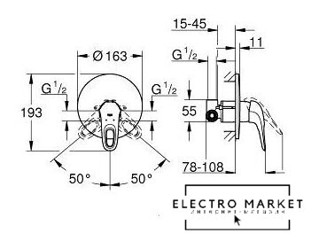однорычажный смеситель для ванны и душа, монтаж на стену