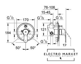 однорычажный смеситель для ванны и душа, монтаж скрытый