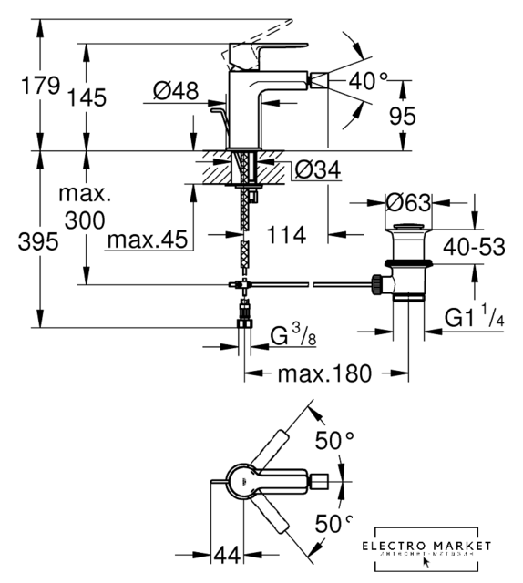 однорычажный смеситель для ванны и душа, монтаж на стену