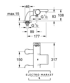 однорычажный смеситель для ванны и душа, монтаж на стену