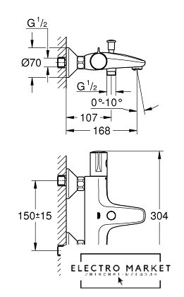 однорычажный смеситель для ванны и душа, монтаж на стену