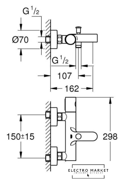 однорычажный смеситель для ванны и душа, монтаж на стену
