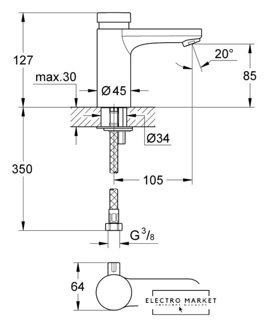 однорычажный смеситель для умывальника, монтаж на раковину или столешницу