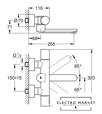 термостатический смеситель для ванны и душа, монтаж скрытый