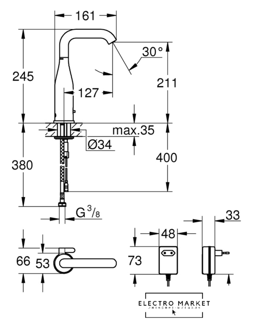 бесконтактный смеситель для умывальника, монтаж на раковину или столешницу