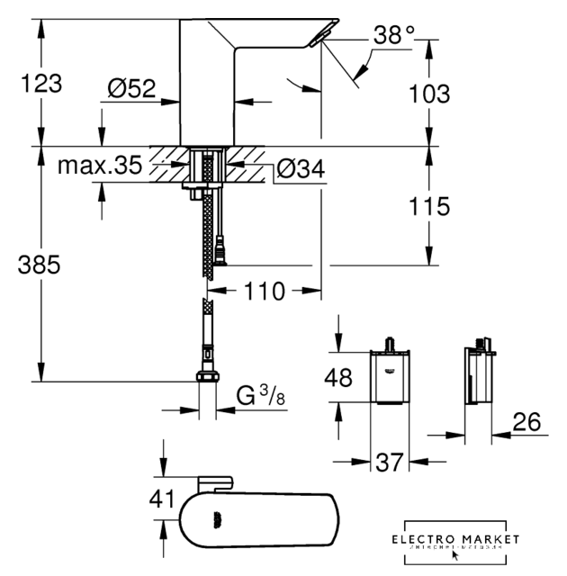 однорычажный смеситель для умывальника, монтаж на раковину или столешницу