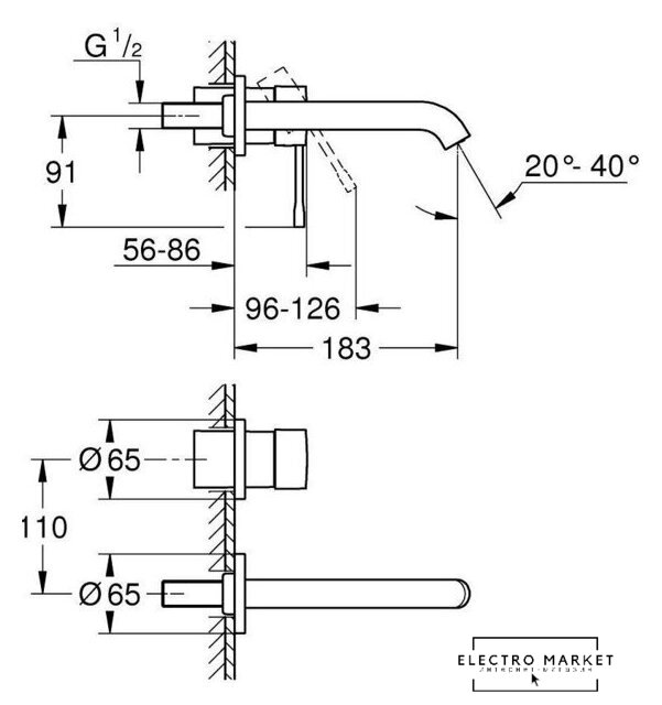 | Длина (вылет) излива | 183 мм |
