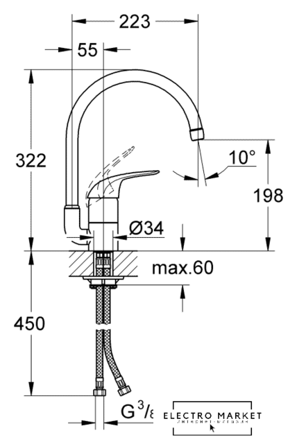 | Длина (вылет) излива | 223 мм |