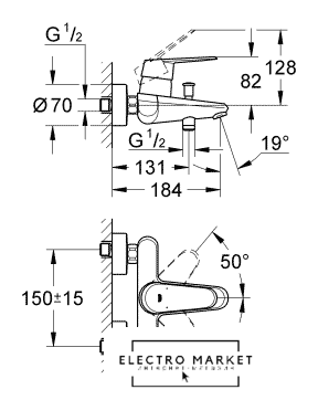 однорычажный смеситель для ванны и душа, монтаж скрытый