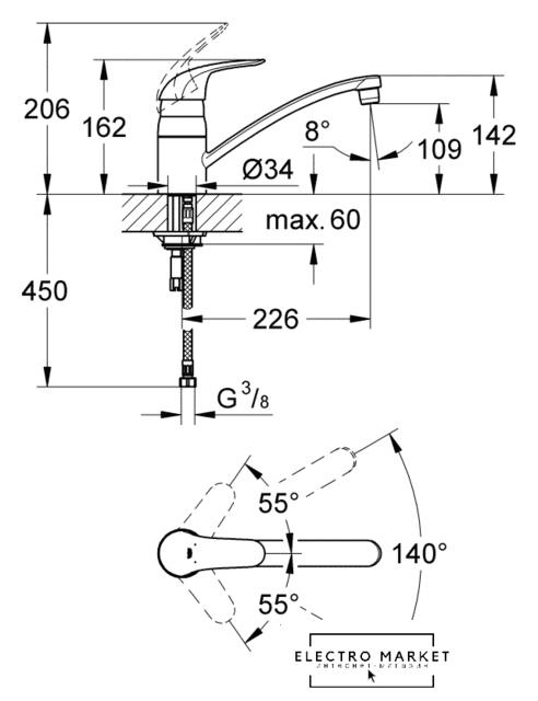 однорычажный смеситель для кухни, монтаж на раковину или столешницу