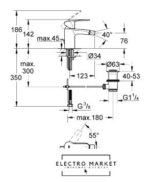 однорычажный смеситель для ванны и душа, монтаж на стену