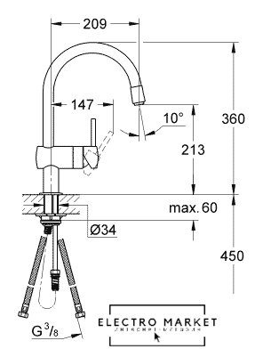 однорычажный смеситель для кухни, монтаж на раковину или столешницу