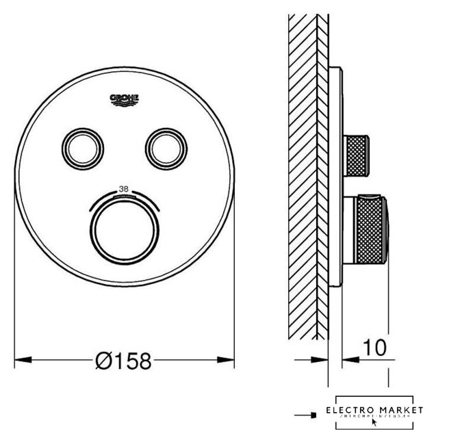 кнопочный переключатель режимов для душа, монтаж скрытый