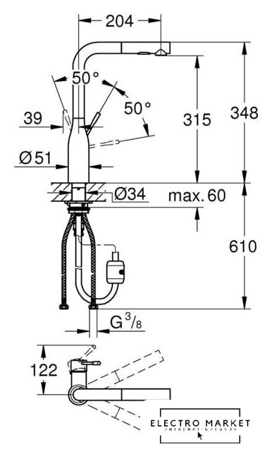 Поворотный излив | 360 ° |