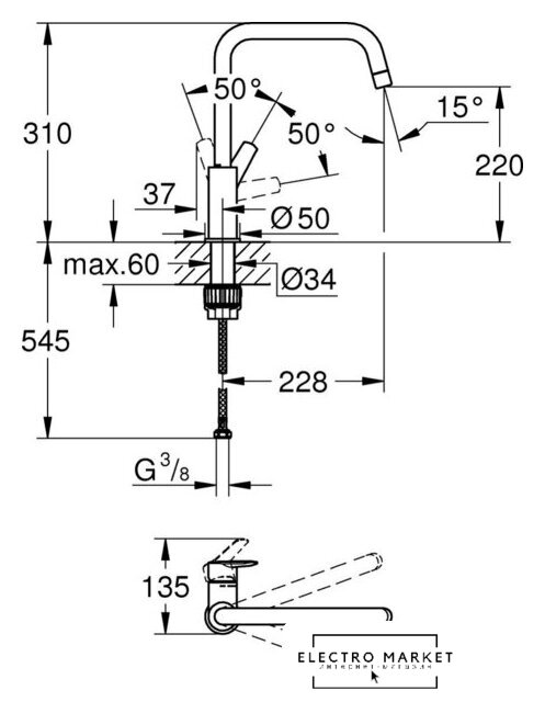 однорычажный смеситель для умывальника, монтаж на раковину или столешницу