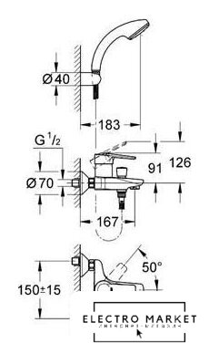| Длина (вылет) излива | 167 — 167 мм |