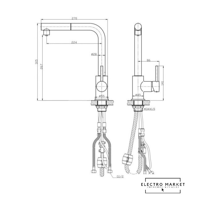 цифровой смеситель для кухни/для умывальника, монтаж на раковину или столешницу