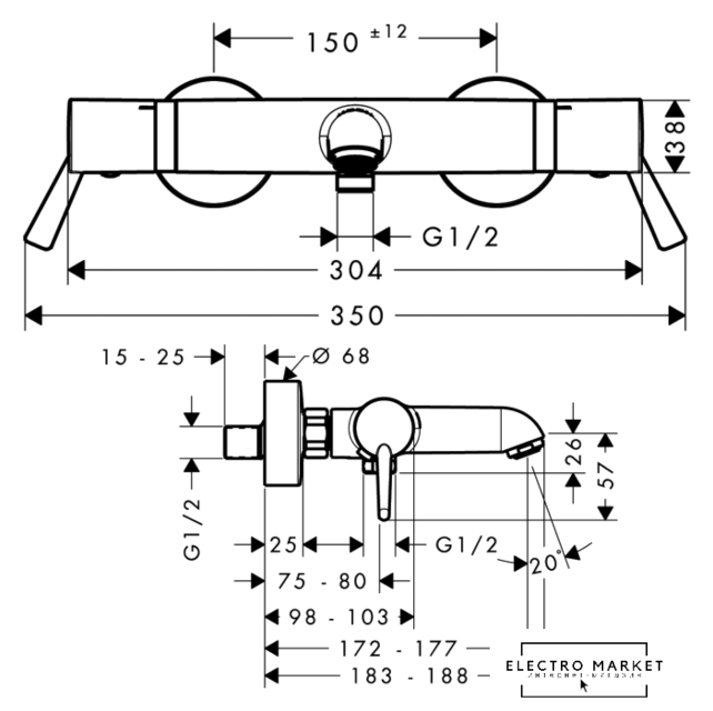 термостатический термостатический смеситель для ванны и душа, монтаж на стену