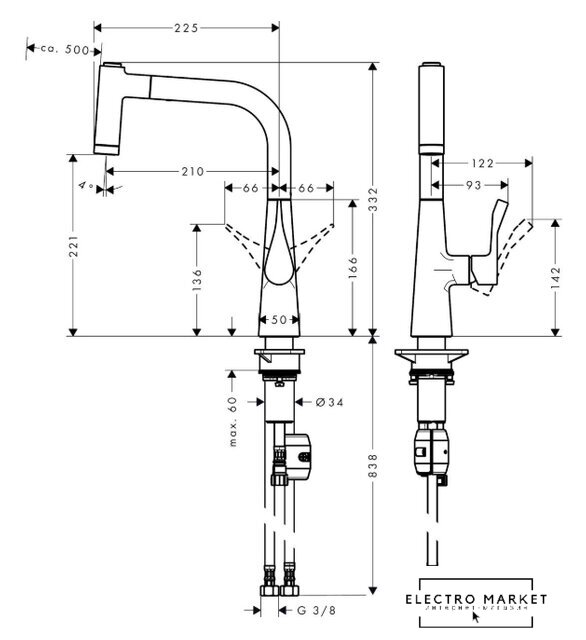 однорычажный смеситель для кухни, монтаж на раковину или столешницу