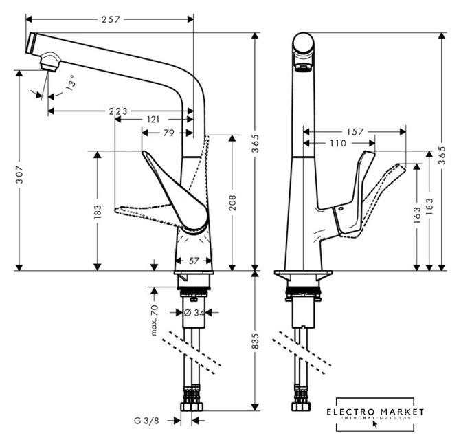 Высота излива | 307 мм |