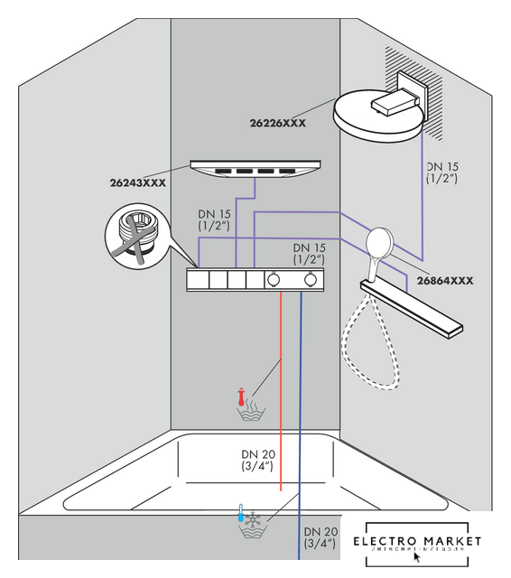 термостатический скрытый механизм для ванны и душа, монтаж скрытый