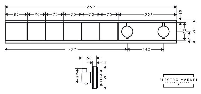 термостатический смеситель для ванны и душа, монтаж скрытый