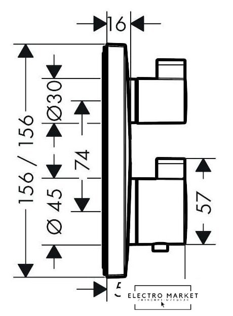 термостатический смеситель для ванны и душа, монтаж скрытый