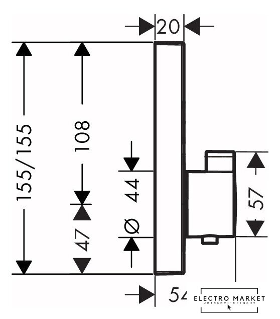 термостатический смеситель для душа, монтаж скрытый