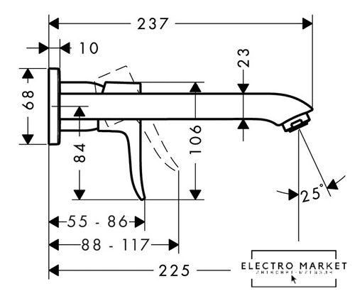 Длина (вылет) излива | 225 мм |