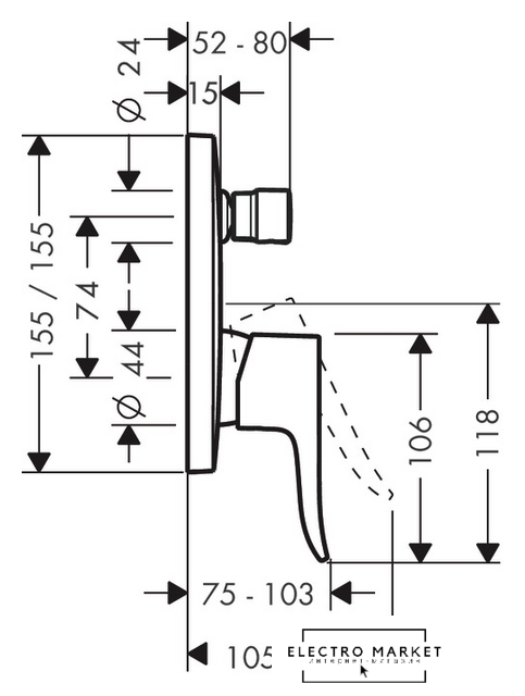 однорычажный смеситель для ванны и душа, монтаж скрытый