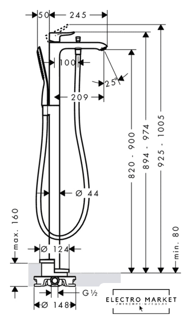 однорычажный смеситель для отдельностоящей ванны, монтаж на пол