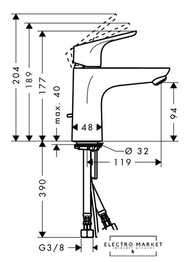 Длина (вылет) излива | 119 мм |