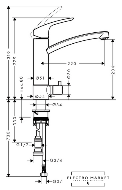 однорычажный смеситель для умывальника, монтаж на раковину или столешницу
